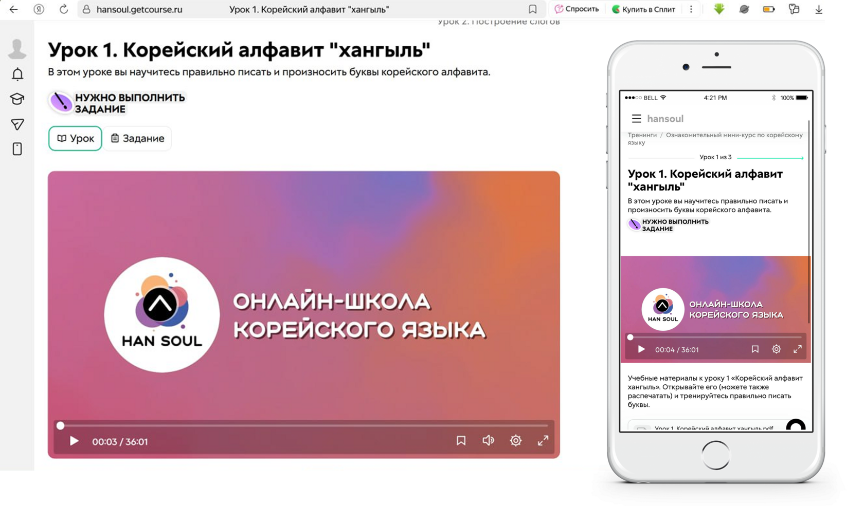 Обучение проходит на платформе Getcourse.